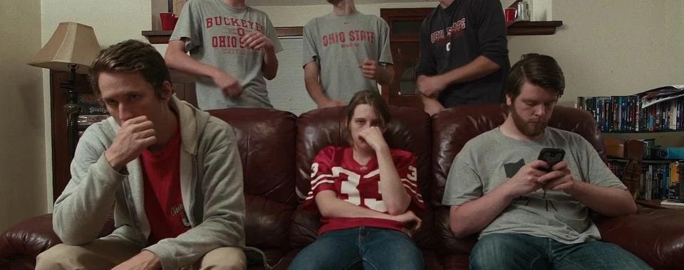 Allen’s decision to move with no real plans other than hanging around frats and bars during football games only leads him further into isolation and a state of anxiety. The worried tone of his mother during their phone calls, along with his tendency to get violent whenever someone disagrees with him about football, spells out that something is off with Allen’s mental health, and as time goes on his precarious state only worsens.